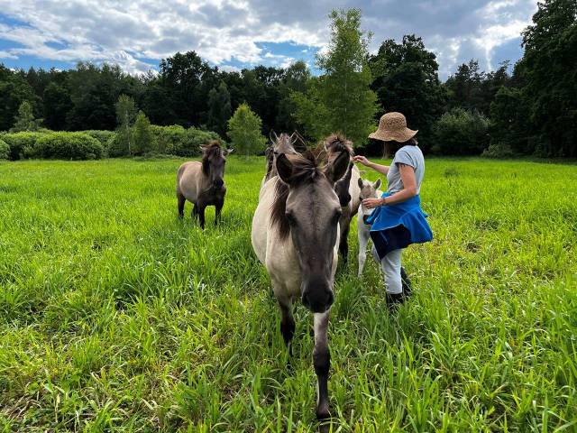 Konik polski spełnia niezwykle istotną rolę w przywracaniu bioróżnorodności. Dzięki całorocznemu wypasowi rozwija się w równowadze flora i fauna na obszarze wypasu. Chętnie oprowadzamy gości po pastwikach z konikami, opowiadamy o życiu stada w ich niemal naturalnej formie sprzed setek lat, umożliwiamy osobiste spokanie z tym pięknym zwierząciem.